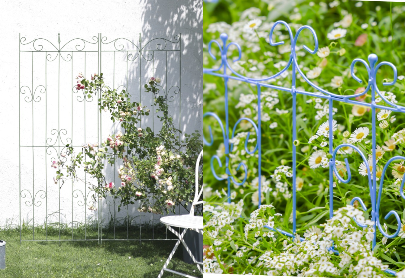 4色のうち私の推しはやはりブルー♥くすみブルーが入るだけでちょっと外国のお庭の雰囲気が出る気がして、うちのお庭でも差し色にブルーを取り入れています。今は花壇の中に小さめの窓型フェンスをおいてクレマチスを誘引していますが、それをこちらのくすみブルーに変えてくすみブルー×あざやかピンクの景色を作りたいです♪
